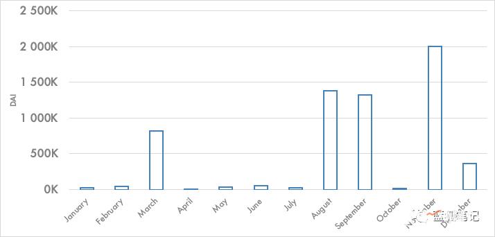 2018年DAI的应计稳定费(按月计算)